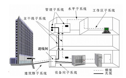 根据大厦特点提出的具体需求,综合布线系统支持计算机网络系统、语音系统,由工作区、水平子系统、管理区、干线子系统和设备间五个部分构成,充分考虑了高度的可靠性、高速率传输特性、可扩充性,并考虑到了与其它建筑物连接成建筑群子系统的可能性。